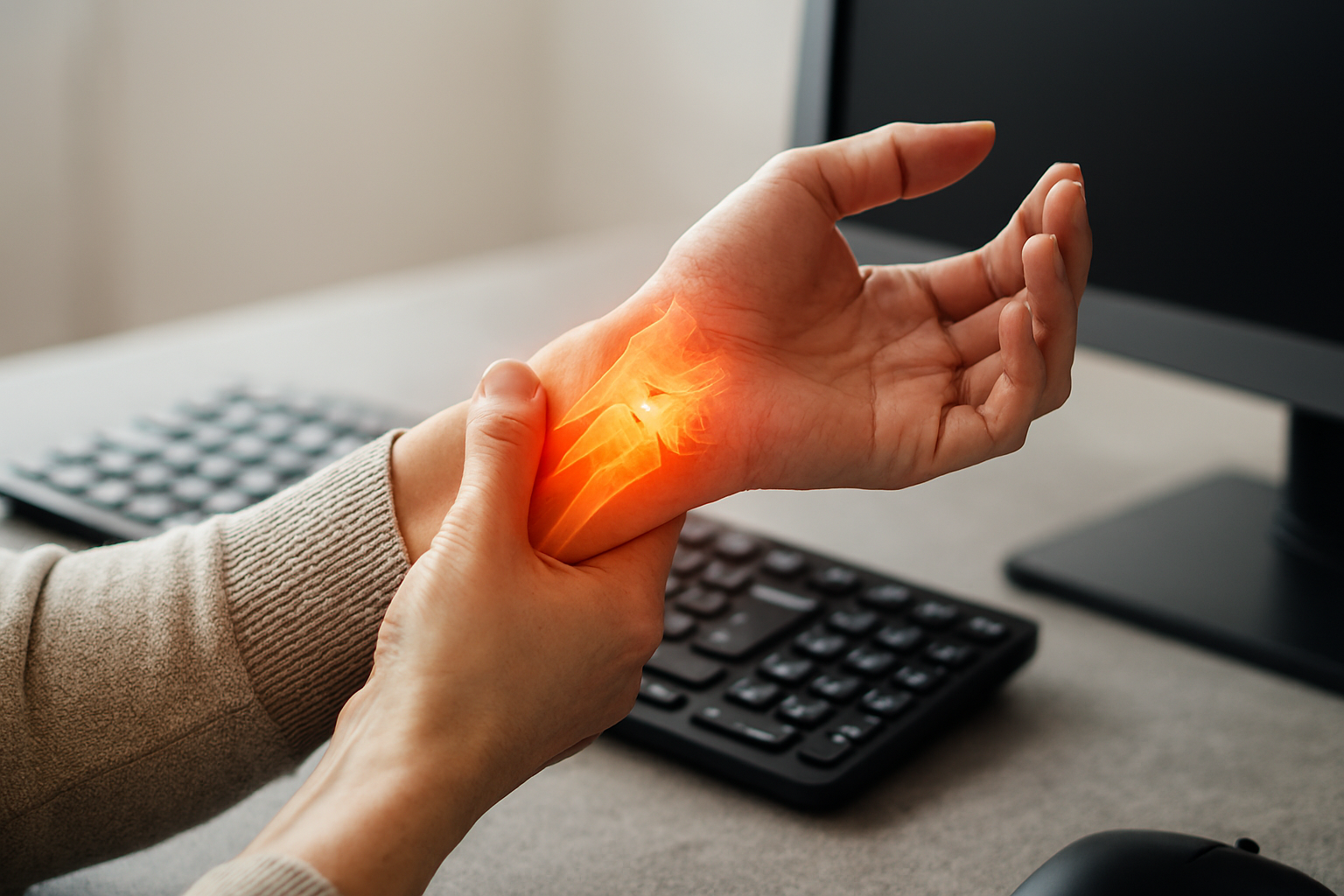 - Movimentos repetitivos do punho e das mãos, como digitação, uso prolongado de computador, atividades manuais repetidas.